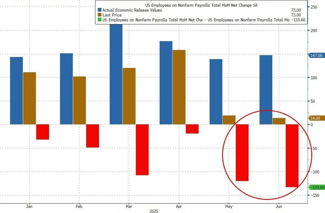 美国5月和6月非农新增就业人数均遭大幅下修。