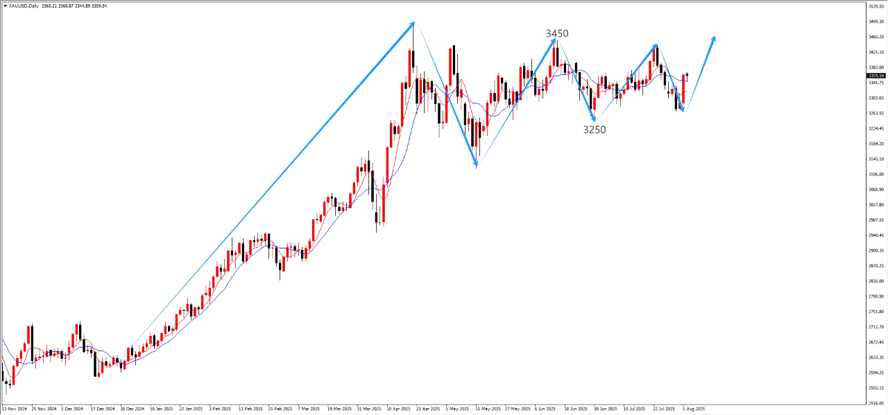 我们把目光放得更长远些。纵观日线图,一个清晰的脉络浮现眼前:从去年12月至今,黄金的大趋势结构,其实从未脱离“上涨”二字! 只不过,最近三个多月,它选择在3450 - 3250这个大区间内“震荡洗盘”,磨炼着多空双方的耐心。