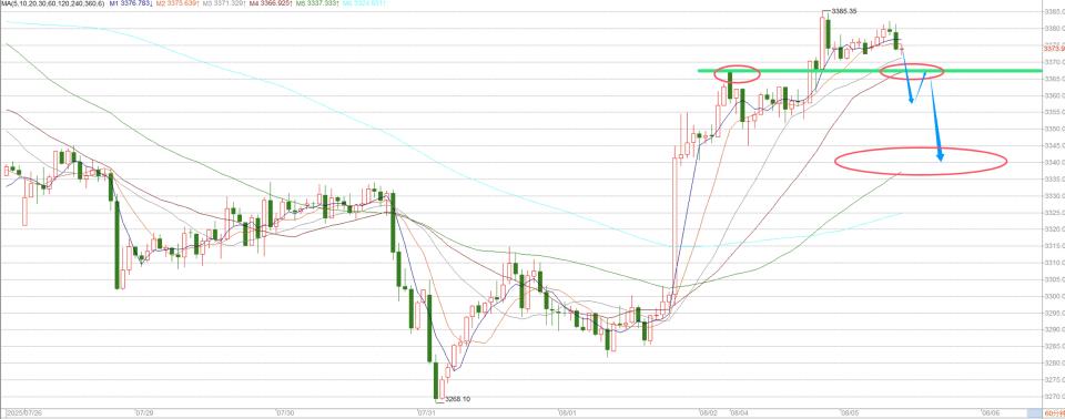 或者直接就在3375-80区域进场做空,以昨晚高点3385为防守就行了。