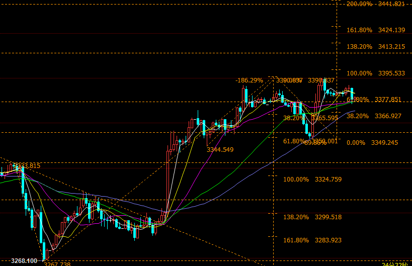 所以,今日操作上,首先昨日高点3390压制做空,这里不能成功,那么3405~10区域压制继续做空;下方短线目标首先看3365区域,重点目标是3350区域,这里下破空头主动,然后进一步关注3330以及3315区域。在3350区域下破前,依然可参与多单,时间点应该在美盘;如果3350下破,那么多单就需要谨慎了,下方3330及3315参与反弹多单。参考制定交易策略,盘中我们及时跟进。