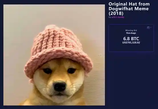 80 万美元的溢价,是 meme 的「原味」价值。@finnbags 拍下的这顶,是 Solana 上著名的 meme 币 $WIF(dogwifhat) 在 2018 年的原型 meme 中所出现的那顶。现在,这顶帽子将永远从上图这只可爱小狗的头上离开,到 Bags 的手中。