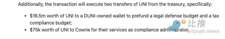 · 1,650 万美元等值 UNI:用于支付历史税务欠款(预计低于 1,000 万美元)及建立法律防御预算。