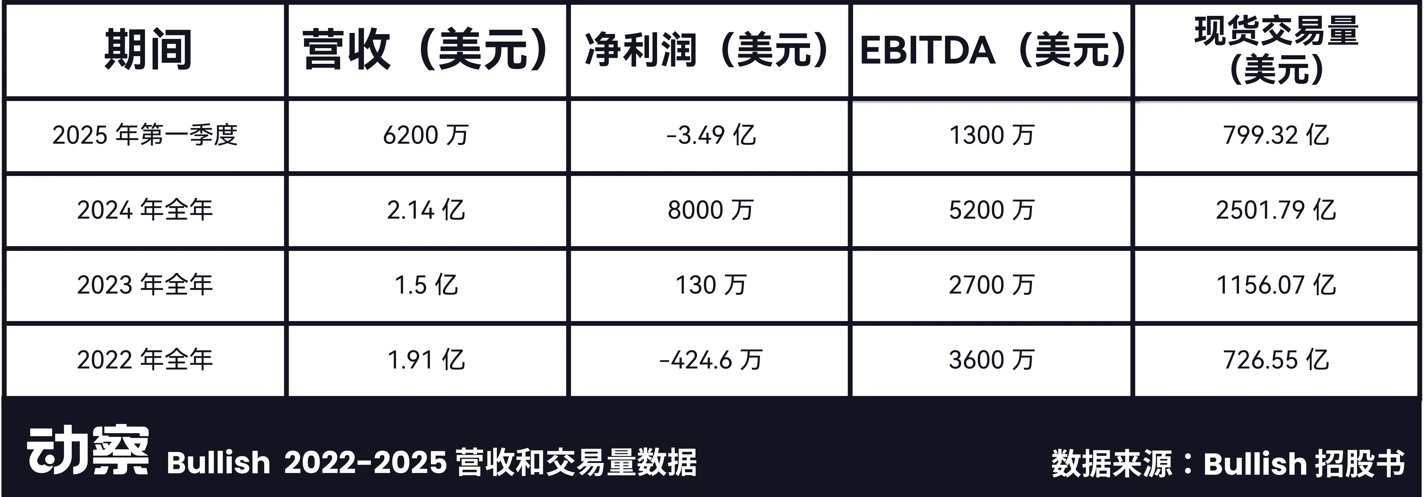 根据招股书,2025 年第一季度 Bullish 报告了 3.49 亿美元的净亏损,这一亏损主要归因于公司所持有的比特币和以太坊等加密资产的公允价值大幅下跌。