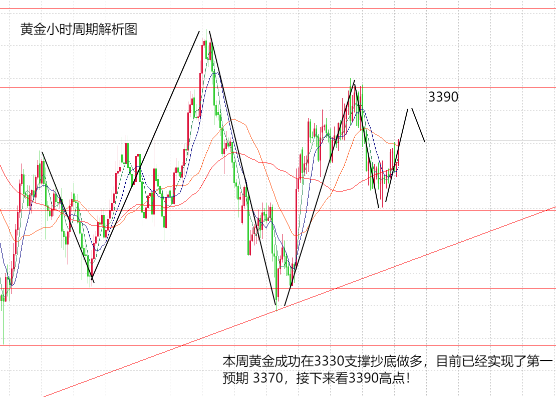 上个交易日黄金按照预期走出了稳定的上涨空间,最高实现了3370的目标点,本周总结下来,周一提示看跌,周二提示看震荡,准备抄底做多,周三坚决看涨到3370,已经实现了山海所有的预期,那么,接下来就看周四,周五行情的走势。在这里山海还是强调一点,本周黄金不要过分看趋势,看方向,大概率是一个震荡上行走势,所以,即使现在上涨的很有力度,但预计本周上涨力度不会很大,周四,周五看一个3390高点即可。白银在这个周期中从37.5看涨到38.5,已经实现了预期的目标,那么,在本周最后两个交易日,白银还有上涨的空间,预计看到39附近即可,同样不要过分看涨。