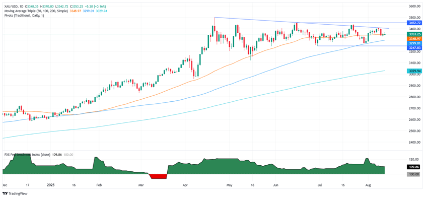 FXStreet分析师Christian Borjon Valencia指出,随着美联储降息押注增加和地缘政治谈判加剧,金价上涨。投资者继续加大对美联储将在9月会议上降息的押注,地缘政治也成为焦点:美国总统特朗普将会见欧洲和乌克兰领导人,然后与俄罗斯总统普京就乌克兰休战举行阿拉斯加峰会。