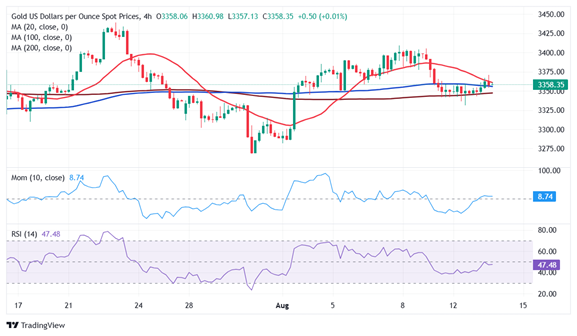 24K99讯 周四(8月14日)亚市盘中,现货黄金自日内高点显著回落,目前金价位于3358美元/盎司附近。FXStreet首席分析师Valeria Bednarik撰文,对黄金技术前景进行分析。