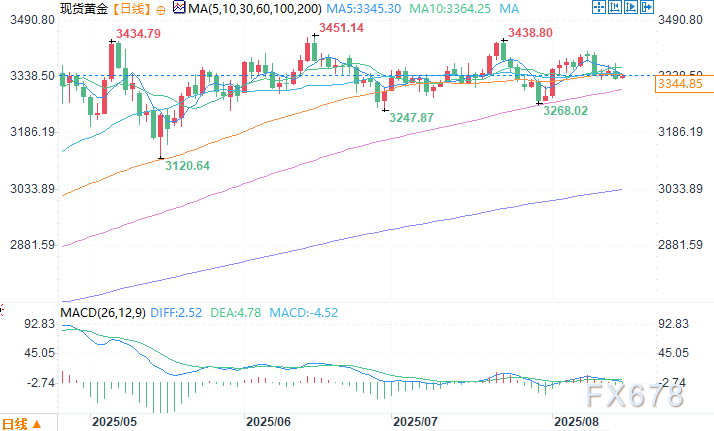 北京时间8月15日13:14 现货黄金 报 3345.85 美元/盎司