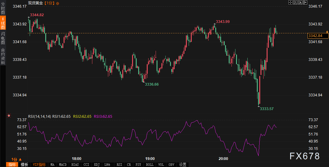 7月零售销售数据发布后,市场反应迅速但分化。美元指数(DXY)短线上扬超10点,报97.95,反映市场对消费数据符合预期的正面解读,但彭博美元即期指数随后缩减跌幅,显示市场情绪并不完全乐观。现货黄金短线走低约5美元,最低触及3333.57美元/盎司后反弹。