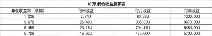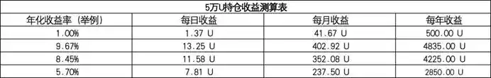 (一)5 万 U、10 万 U、50 万 U 持仓收益测算表