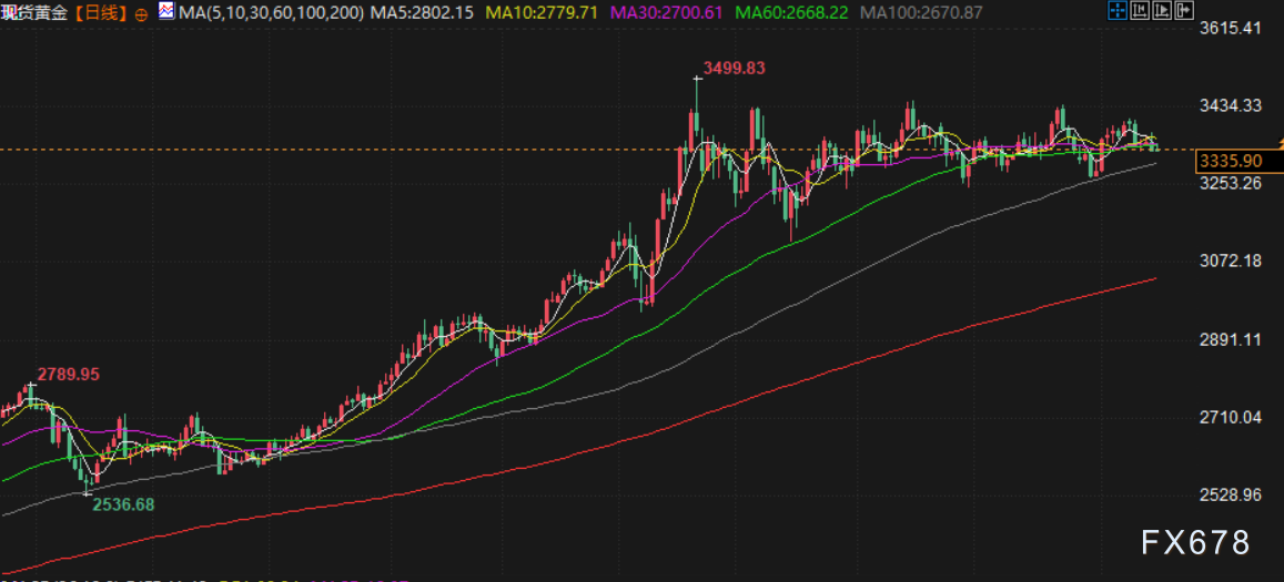 现货金基本持平于每盎司 3336.66 美元,本周下跌 1.8%。美国期金结算价基本持平于 3382.6 美元。