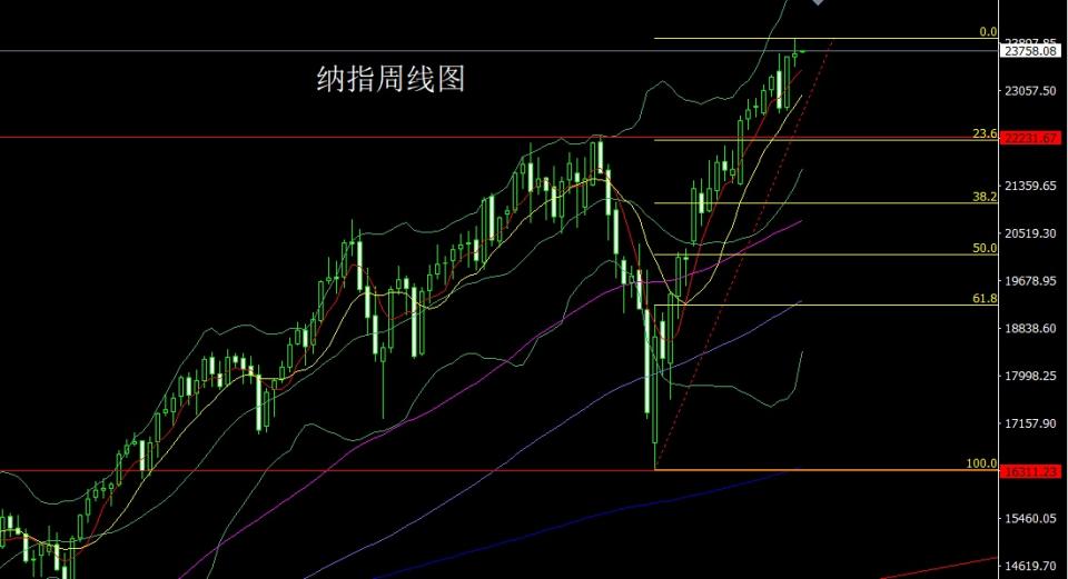 纳指市场上周开盘在23653.75的位置后行情先回落,周线最低给到了23478.73的位置后行情强势拉升,周线最高触及到了23967.88的位置后整理,周线最终收线在了23706.11的位置后,周线以一根上影线长于下影线的纺锤形态收线,而这样的形态收尾后,本周依旧有回落压力,点位上,上周五23860的空减仓后止损跟进在23900,今日23850空止损23900下方目标看23650,跌破看23600和23550-23500.