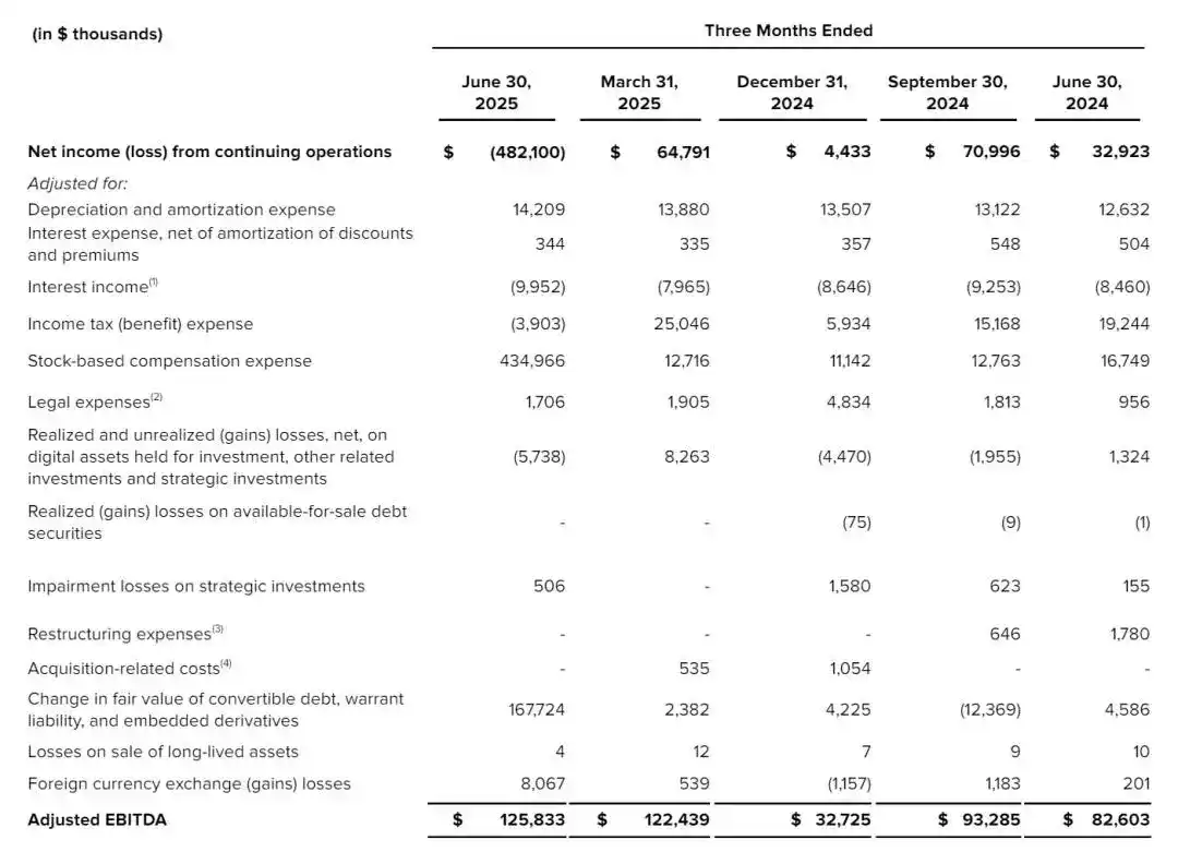 Circle 在 2025 年第二季度 Adjusted EBITDA 为 1.26 亿美元,较上年同期的 8260 万美元增长 52%;Adjusted EBITDA 率为 40%。