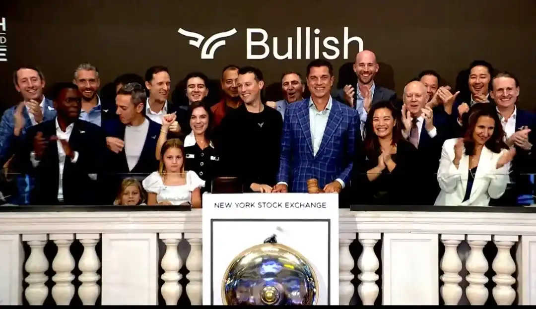 Bullish 开盘价为 90 美元,较发行价上涨 143%;盘中最高冲到 118 美元,较发行价上涨 219%;收盘价为 68 美元,较发行价上涨 84%。以收盘价计算,公司市值为 99.4 亿美元。截至周五收盘,Bullish 市值 102 亿美元。