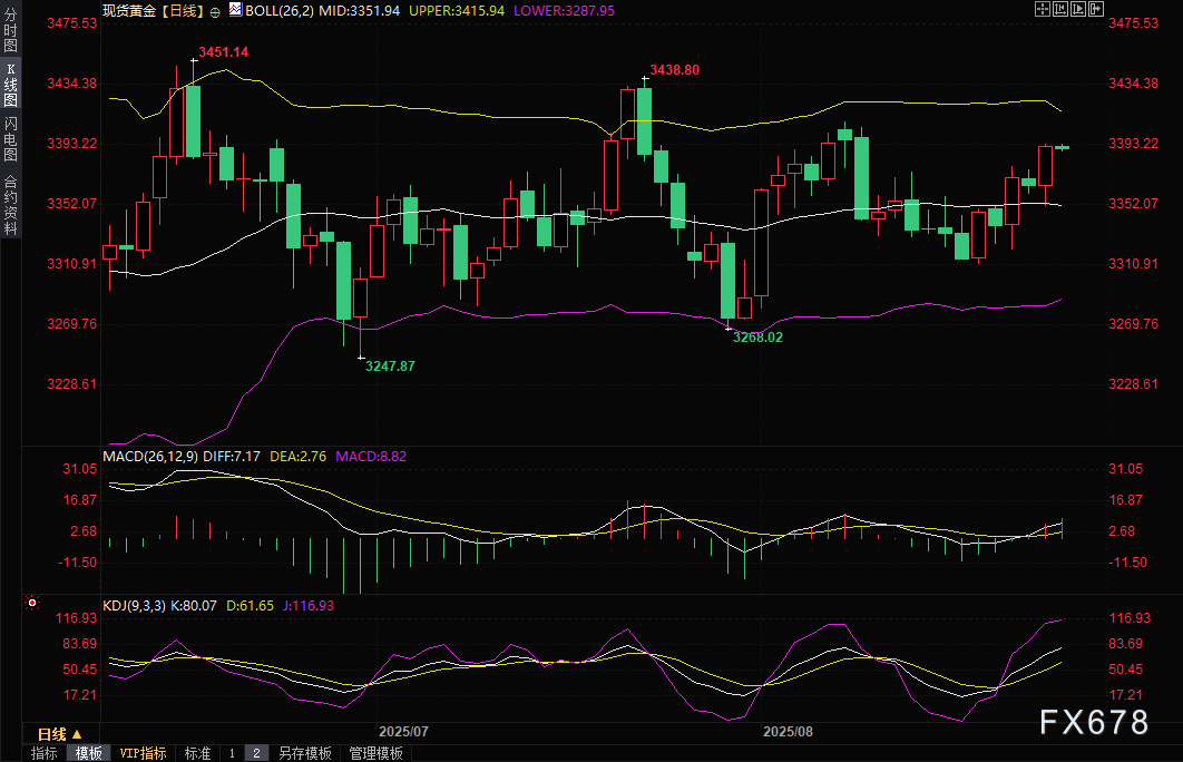 汇通财经APP讯——周三(8月27日),亚市早盘,现货黄金窄幅震荡,目前交投于3390.85美元/盎司附近。周二(8月26日),美国总统特朗普突然宣布解雇美联储理事库克,理由是其在抵押贷款申请中存在“不当行为”。这一举动不仅直接挑战美联储的独立性,更瞬间点燃了市场的避险情绪。黄金价格应声飙升至逾两周最高点,现货黄金单日上涨0.83%,收于3393.43美元/盎司,为近两周最高收盘价。与此同时,美元指数下跌0.22%,国债收益率曲线趋陡,市场对9月降息的预期升至87%以上。这场政治与金融的碰撞,正将黄金推向新一轮牛市的风口浪尖。
