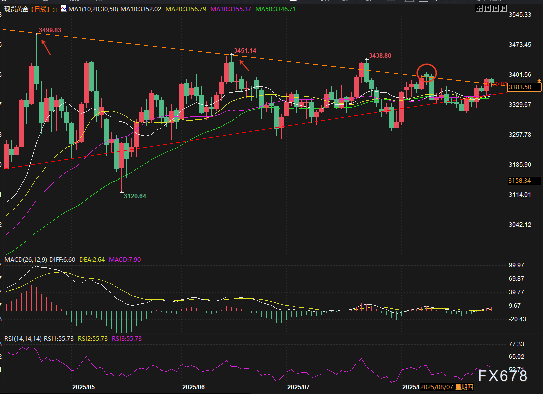 技术面上现货黄金价格正在挑战自4月22日起形成的原始下降通道,在美印关税战与去美元化的共振下,黄金可能正迎来新一轮结构性机会。但是短期价格仍然主要看美联储的利率决策,交易员们需要紧盯美国周四的GDP数据和周五的PCE通胀报告。