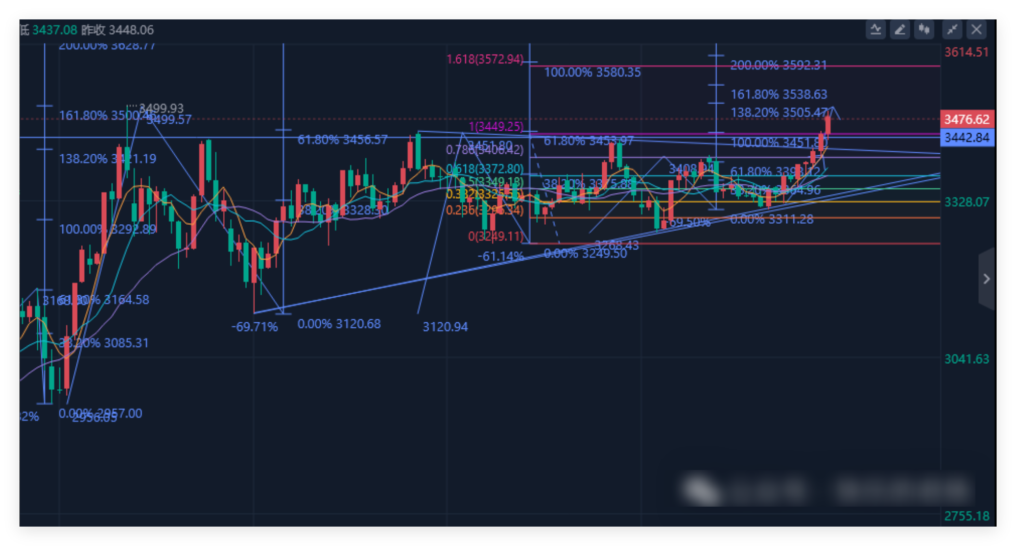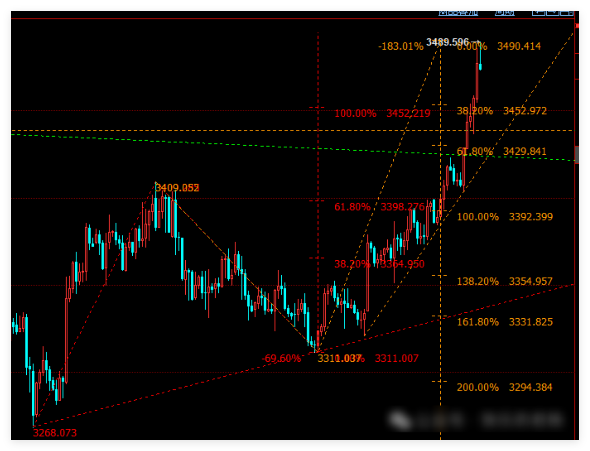 上周我们反复强调重点是3400~10区域阻力,受压那么继续上演冲高下跌;同样,向上突破了,上方3440及3452应该会很轻松破位,然后直逼历史新高。最终,黄金在上周突破并站稳3400~10后迎来加速行情,截止目前为止已经成功突破3450,在冲击历史新高3500美元的路上。