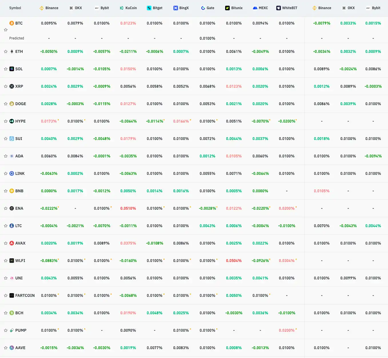 每日市场整体资金热度(根据资金费率反映)与代币解锁