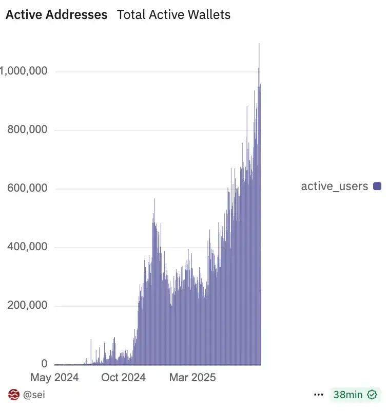 自 Sei V2 上线以来,Sei 生态迎来了爆发式增长,日活用户从 1,300 飙升至近 90 万,日交易量从 5.7 万笔增长到 165 万笔,TVL 从 1 亿美元攀升至近期峰值 6.87 亿美元。对于一个曾深扎在 Cosmos 世界、却主动向更大生态开放的公链而言,这不仅是一次增长曲线的重塑,更是一次战略叙事的翻篇。