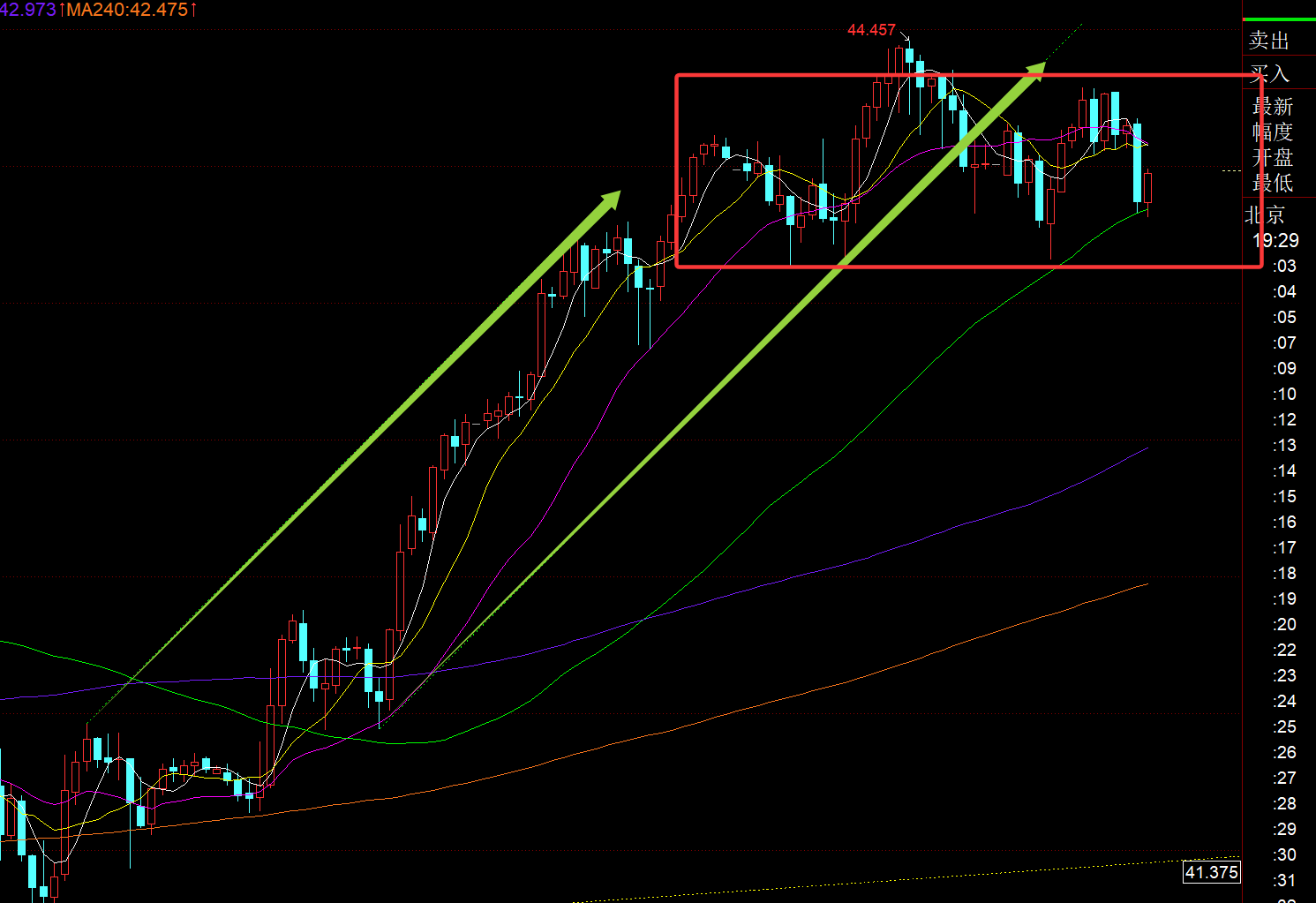 第二,白银方面:同样,昨日早间直接看续涨一波,午后回踩一波,欧盘企稳继续看涨,两次都是依托43.85看涨,最终抵达44.2目标,最高逼近44.45一线;
