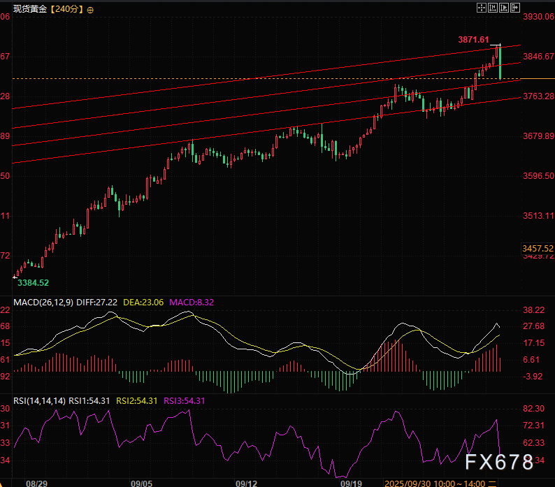汇通财经APP讯——周二(9月30日)欧洲时段黄金自早间触及全新历史高位3871.61后大幅回落,最多回落74美金至3797.32,目前交投于3802.11。在市场信息仿佛都是利好的的背景下,除了短期超涨的金价获利了结需求外还有其他潜在利空。