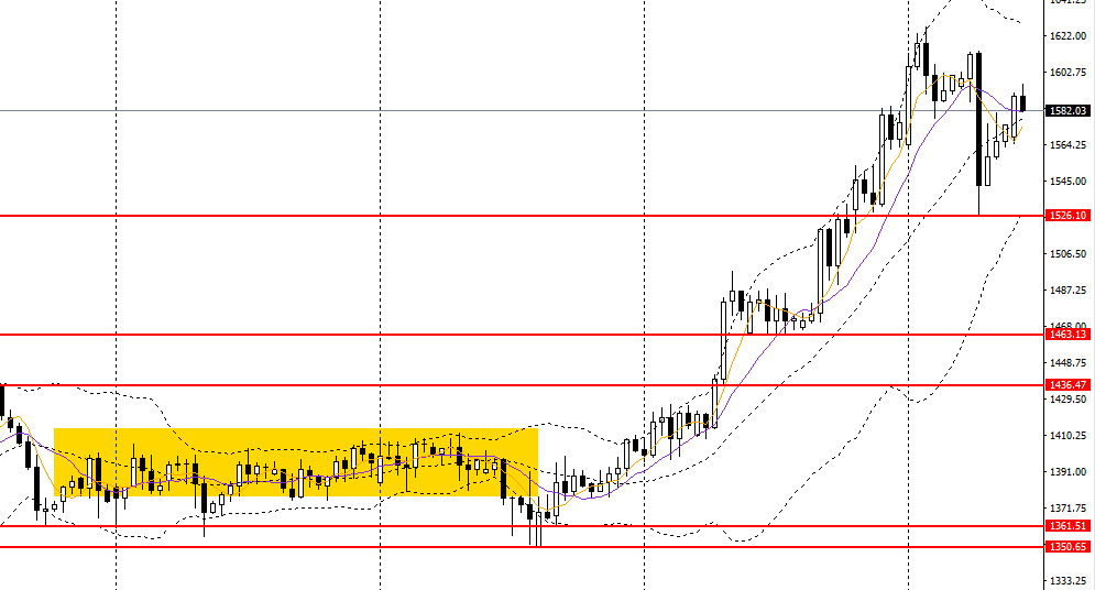 铂金暂停连日来的涨势,仍立于5日均线上方,日线RSI位于50上方,4小时多头动能继续减弱,高位谨慎做多,如回踩1520附近企稳可进多。