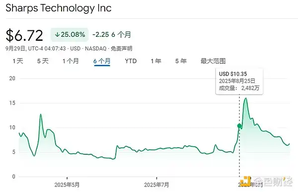 Sharps Technology 计划建立 SOL 财库的消息发酵后,其股价最高突破 16 美元,随后回落,截至发稿报 6.72 美元。
