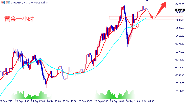 黄金一小时级别,若欧盘持续维稳在3850之上,甚至欧盘出现破高情况,可顺势跟进看二次上行;若欧盘走回撤,下方关注3830/3820支撑位置,这里也是昨日夜间的起涨点,直接回踩做多跟进即可。