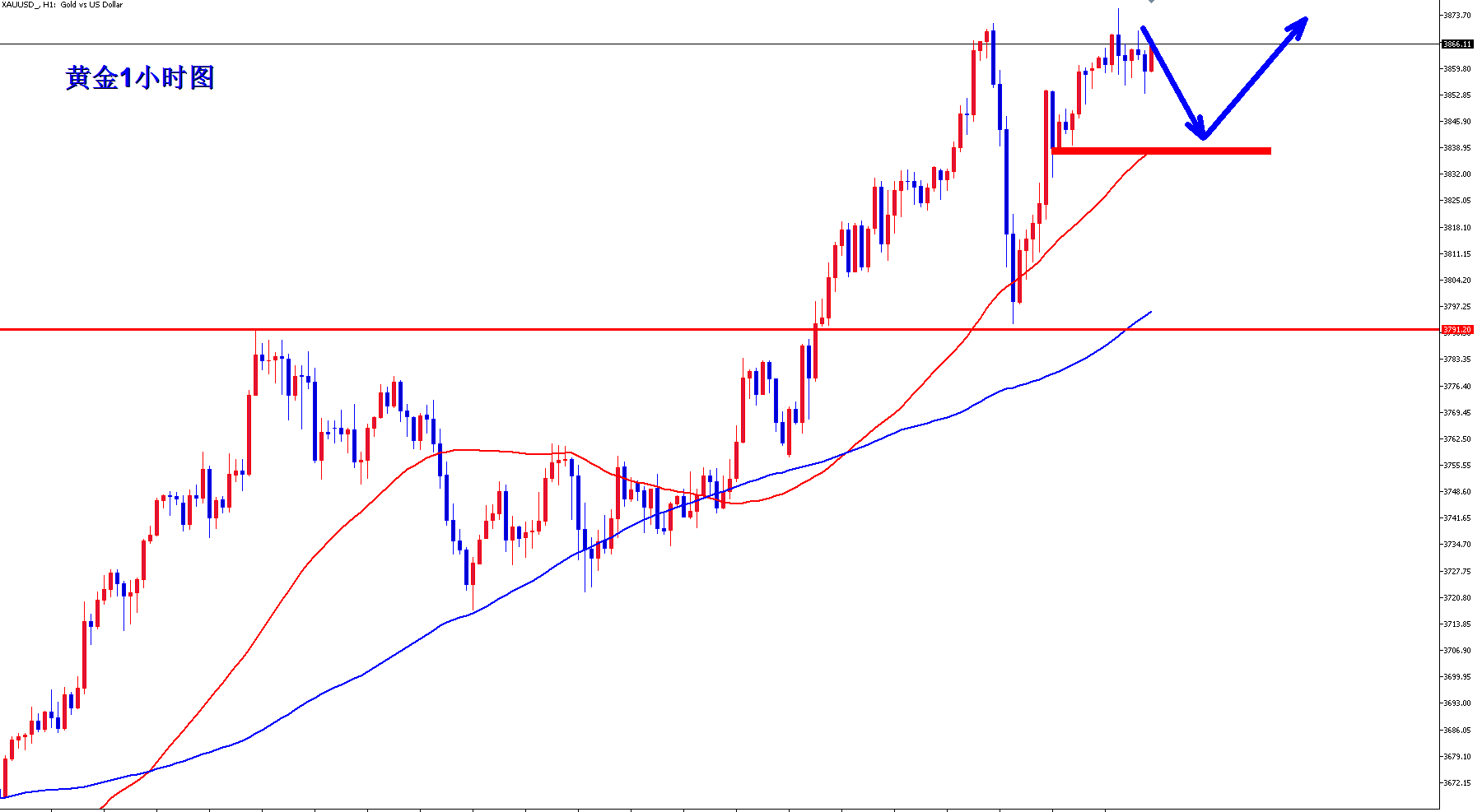 黄金3838多,保护3825,目标3870-3880;