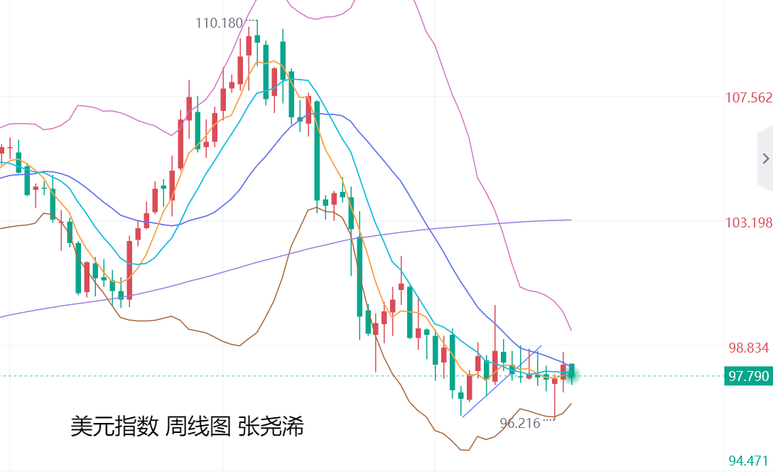 展望今日周四(10月2日):国际黄金开盘延续周三回撤动力,先行表现走弱,美元指数延续昨日触底回升之力先行表现走强,也对其产生一定压力,使其维持近数周的震荡区间之内,但由于周图走势持续的震荡,对于附图指标的多头信号来说,是在不断地消耗看涨动能,故此,对于中期来说,美元指数仍偏向再度向下走弱,而会支撑金价持续反弹攀升。