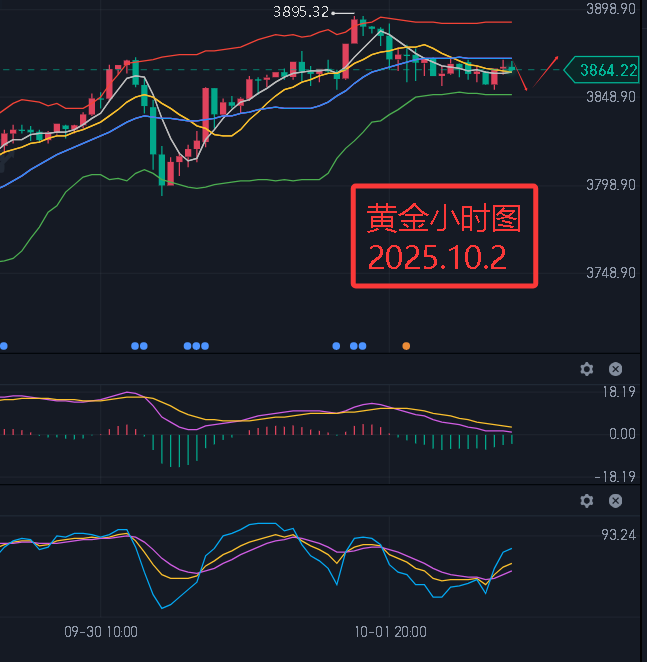 现货黄金(伦敦金):技术面上来看昨日日线收了一根小阳柱,布林带大开口,KDJ指标金叉放量,目前来看大趋势仍旧偏上,中线阶段性上行,这也是我们这段时间一直坚持的思路。短线4小时图中来看,布林带缩口,KDJ指标形成死叉 。小时图中来看,布林带开口 ,KDJ指标金叉放量。短线价格如期回调休整,目前短线先仍旧关注震荡回调休整的情况,下方支撑关注3853/3823/3792一线,上方压力关注3875/3895/3908一线。