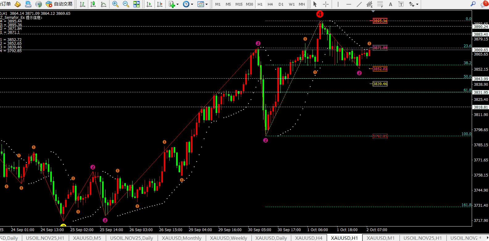 综合而言:目前日内大区间维持在3837-3895区间震荡,短期小区间维持在3852-3890区间运行,而小周期短期有上冲的趋势,也就是目前价格可能先上涨后在进行回落。