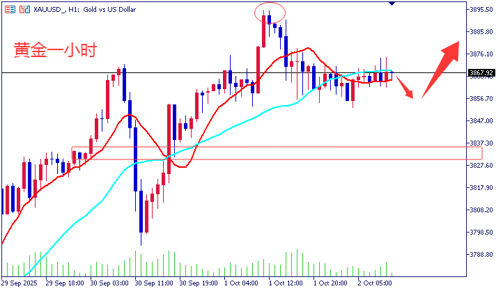 回到盘面黄金一小时级别,均线交叉多空焦灼短期进入高位震荡,技术面看没有真正形成顶部结构,当前黄金在3875-3853区间震荡游走,多空激烈焦灼为下一步方向做准备,短线还是留意下方3850支撑的机会,如有效跌破可能二次回调下看3820-3800强支撑区域,日内操作上我们保持低多参与即可!看多不追多的节奏把握好。