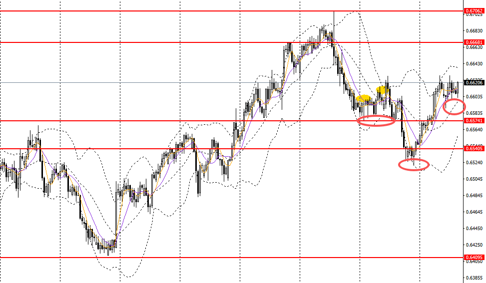 澳美持平前高,站上日线布林中轨,日线RSI位于50上方,4小时呈头肩底,多单可继续持有,短线预计将挑战0.6630,0.6650。