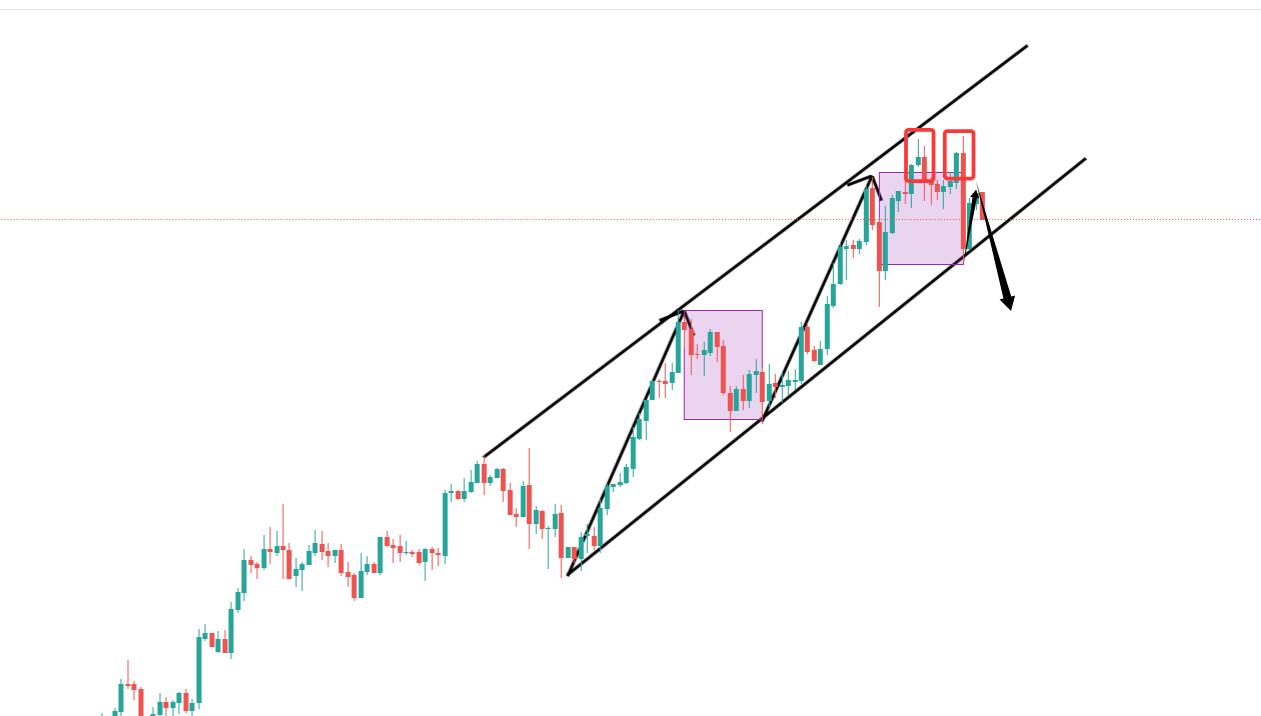 我倒是听关注今天的行情收尾,整个通道内的上涨到目前为止依然保持的非常完好,而顶部尽管出现了两次平行高点,但价格却一直没有跌破通道底沿,而且现在临时跌破也没用,必须得是那种大阴柱直接贯穿才有效,毕竟行情现在的诱惑性太强了,单纯的价格破位已经不能当作破位判定,这点熟悉交易的朋友都懂,就假设,昨晚的3896真的是顶,那么今天跌破3800点到3780,才算是真正意义上的见顶,但还有一个要求,那就是需要收复在最低点附近才行。
