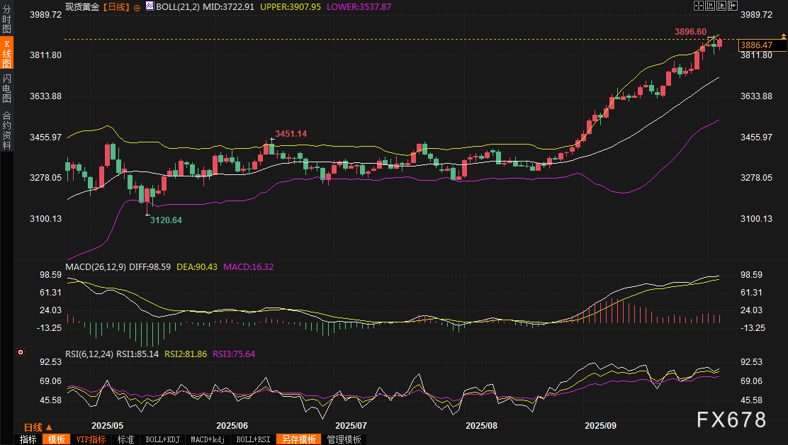 FxPro分析师Alex Kuptsikevich指出,9月黄金ETF三年最大流入,大银行预测金价至4000甚至5000美元,从技术看,实现三角形形态目标超4000美元。