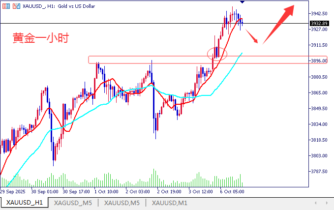 回到盘面黄金一小时,均线还是继续金叉向上的多头排列,黄金上涨还有动能。金价已经企稳3900一线之后,黄金再次回落也仅仅是回踩3898一线之后就继续上涨,美盘回落3900上继续逢低做多即可。