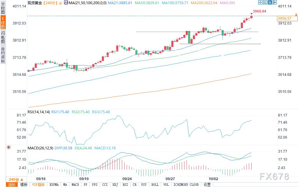 —周一(10月6日)美盘时段,现货黄金延续历史性涨势,价格突破3900美元,不断刷新历史高点。这一走势背后,是美国政府停摆持续、市场对美联储持鸽派政策的预期,以及欧洲重燃的政治紧张局势,这些因素共同推升了黄金的避险需求。