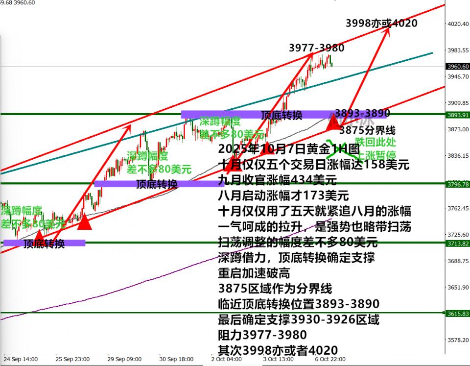 没错,金价已经涨到39开头了,假期仅仅用了五个交易日,金价反复确定3820区域的支撑形成新的起涨点,涨幅达158美元,天天都是新高,今日再破新高3977.3