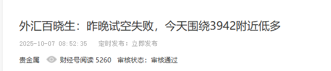 10月7日黄金晚间交易:有3942附近持仓者,减仓持有带3946保盈损,看3980附近压制。