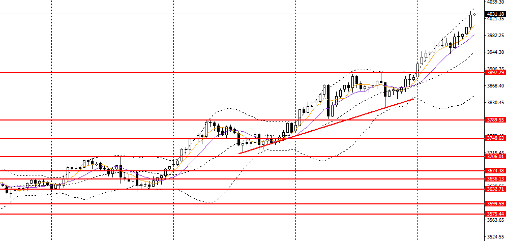 黄金延续上行,上破日线布林上轨,日线RSI继续走高,4小时多次呈空中加油,4020附近企稳可进多。黄金/人民币如于924附近企稳可进多。