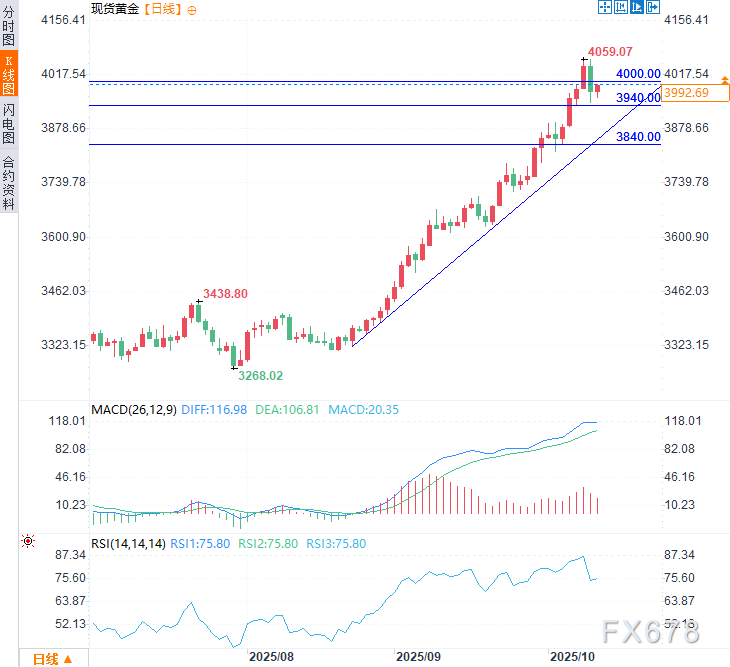 3840美元核心支撑位:连接近期整理区间的关键支撑,失守该点位可能危及当前上升趋势,令动能转向温和看跌。
