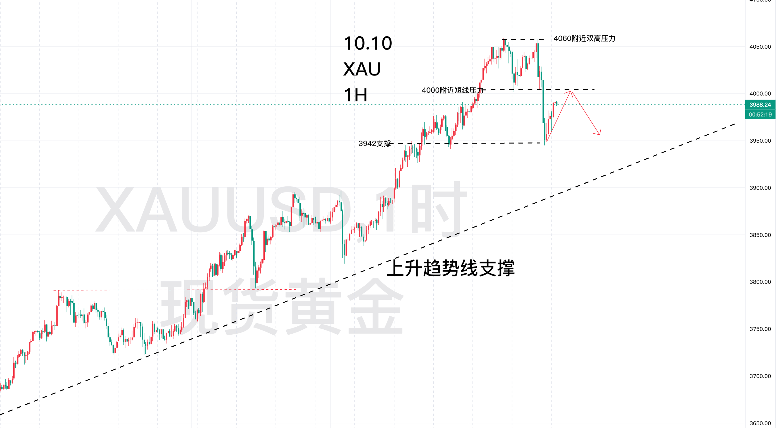 10.10—秋末悔城:黄金高位下跌有预期!4H高位整理不改!