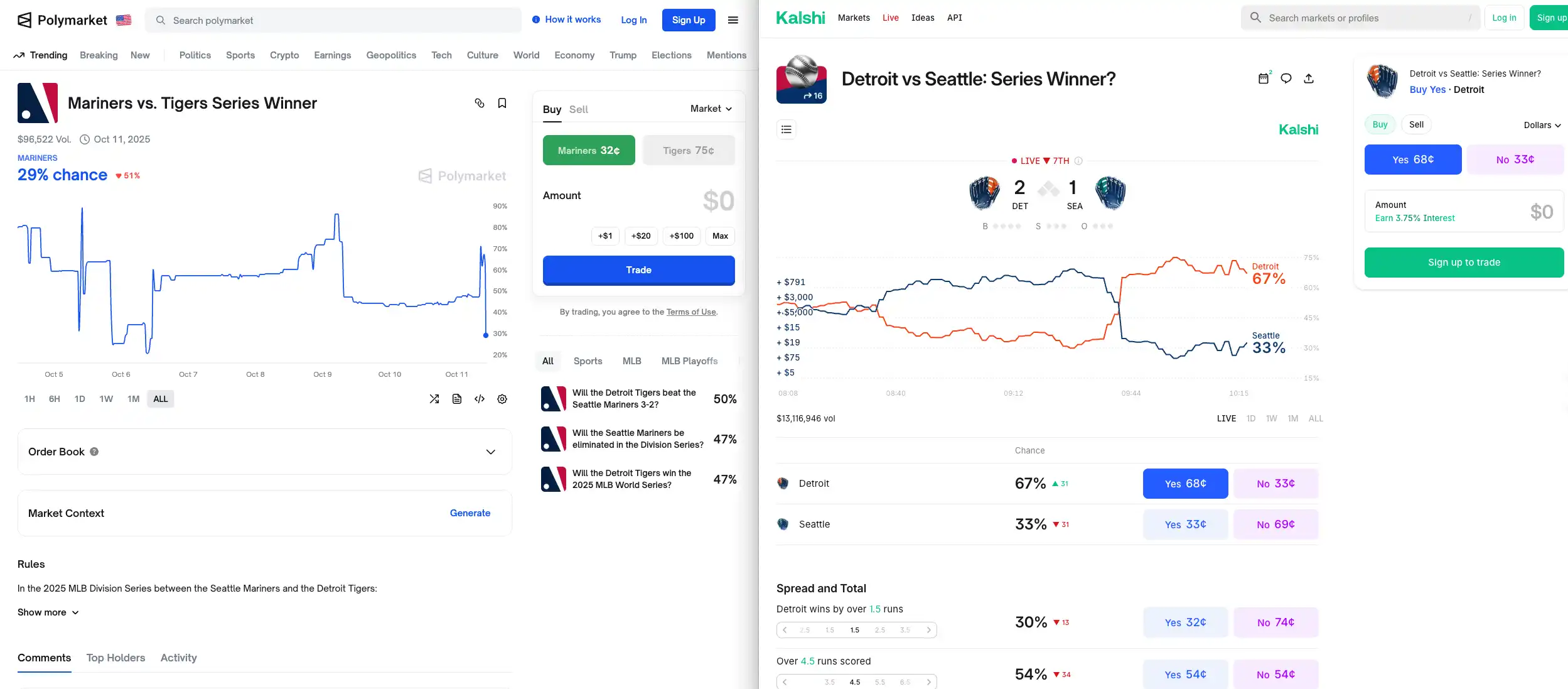 随着纽约证券交易所的母公司洲际交易所(ICE)于 10 月 7 日宣布计划以约 90 亿美元估值向预测市场平台 Polymarket 投资 20 亿美元,仅三天后另一预测市场巨头 Kalshi 也宣布完成 3 亿美元融资,估值达 50 亿美元。