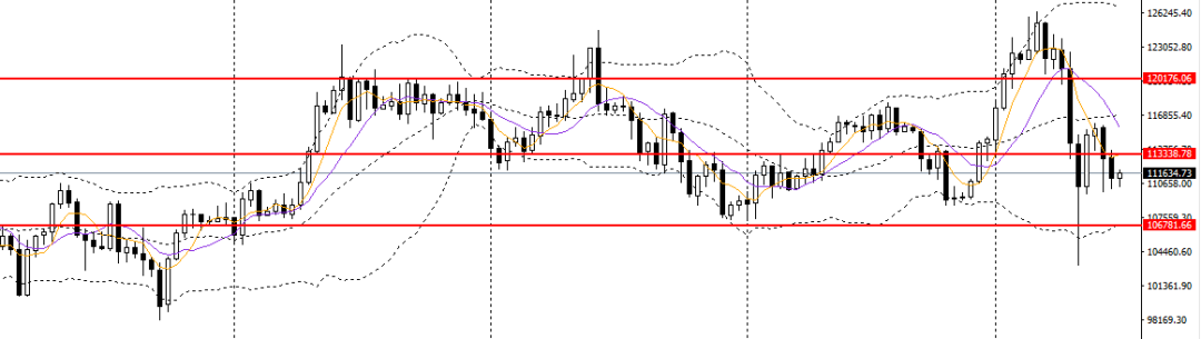 比特币持续回落,日线RSI仍位于50之下,4小时守住110000关口,如维稳于上方,短线预计将延续震荡格局。