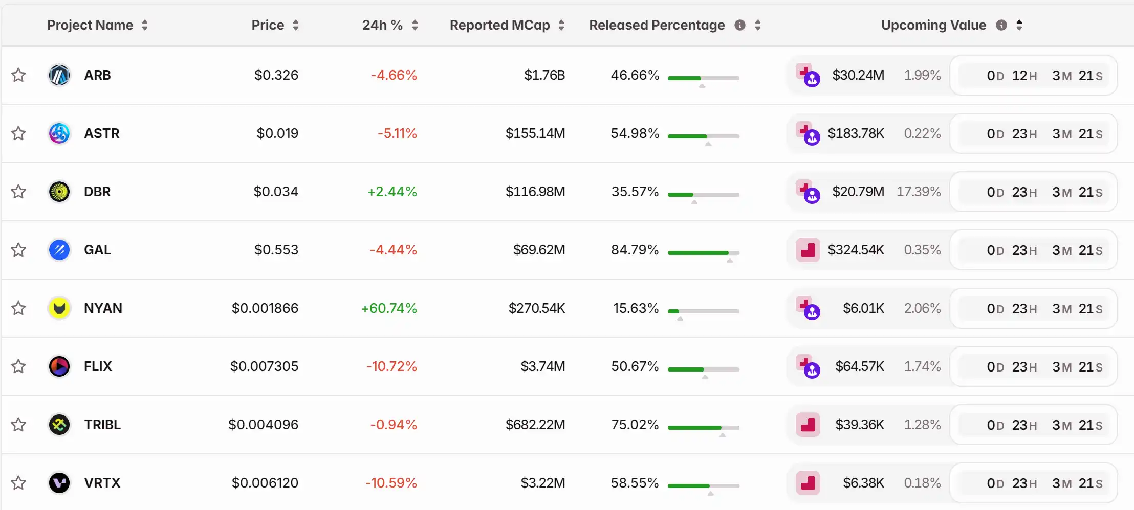 每日市场整体资金热度(根据资金费率反映)与代币解锁