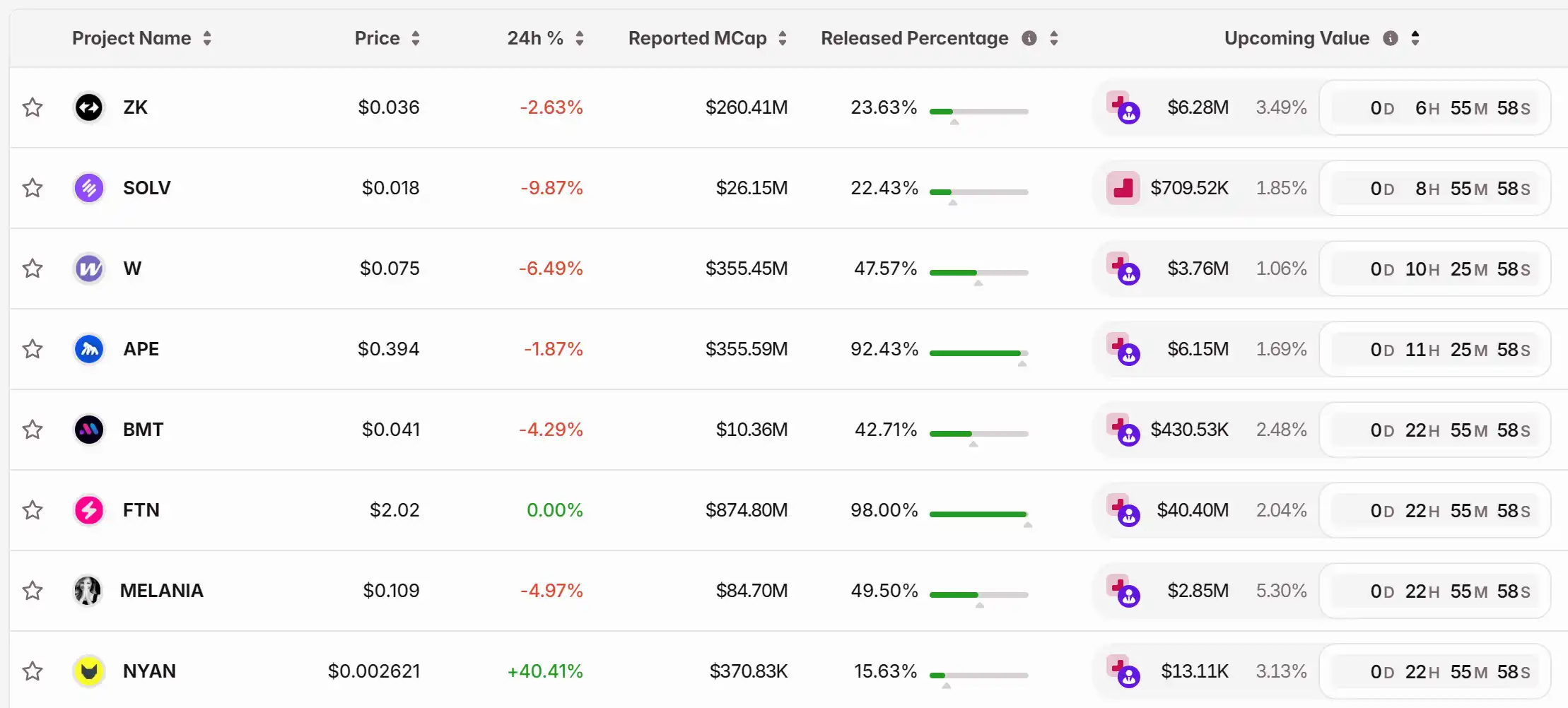 每日市场整体资金热度(根据资金费率反映)与代币解锁