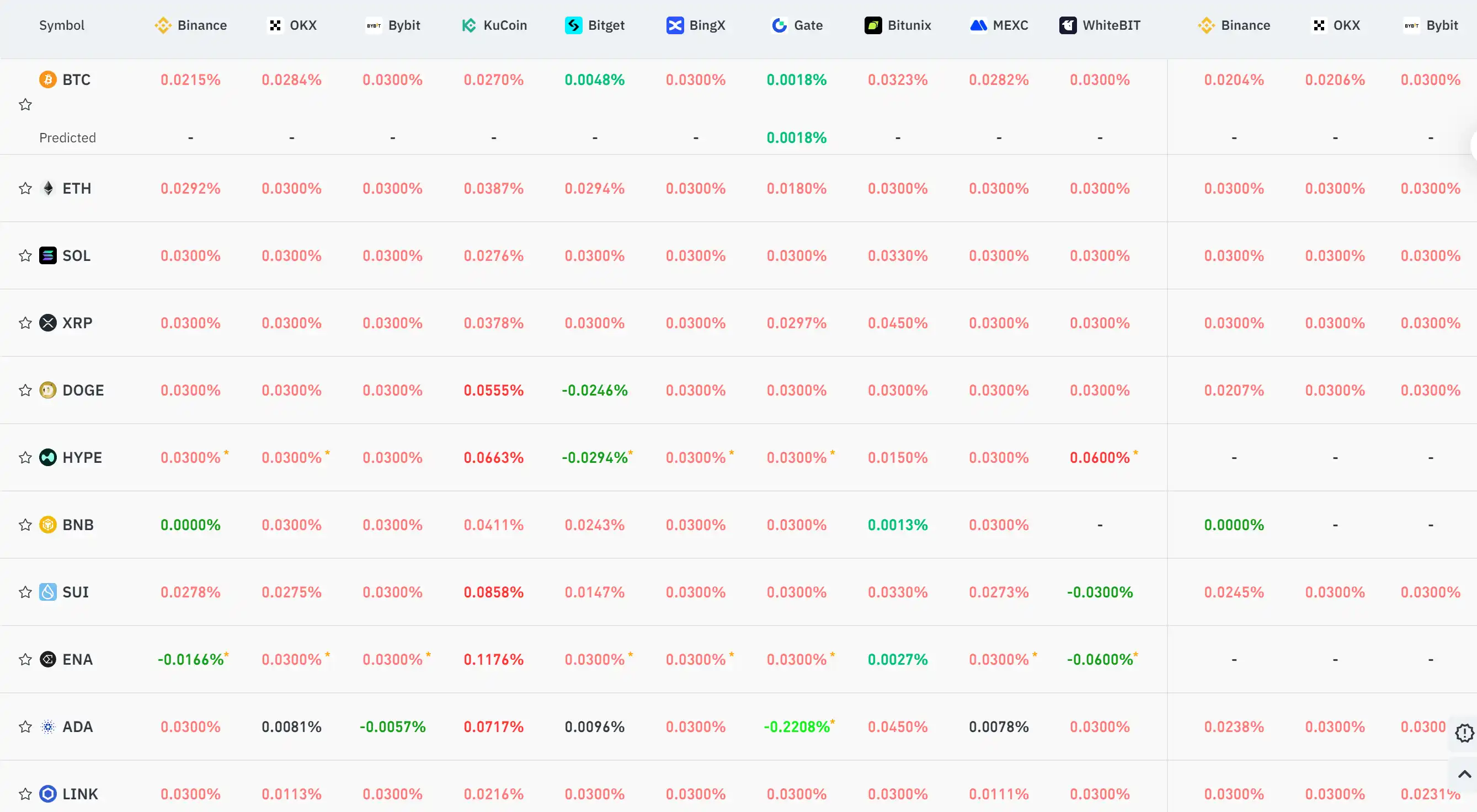 每日市场整体资金热度(根据资金费率反映)与代币解锁