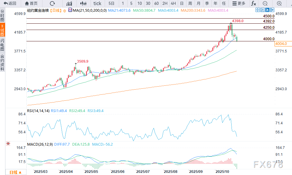从技术角度来看,12月黄金期货多头总体上仍具有短期技术优势,但已大幅减弱。日线图上形成了一个小型看跌旗形形态。多头的下一个上行价格目标是收盘价高于4200.00美元的坚实阻力位。空头的下一个短期下行价格目标是将期货价格推低至3900.00美元的坚实技术支撑位以下。第一阻力位在4100.00美元,然后是隔夜高点4123.80美元。支撑位在4000.00美元。