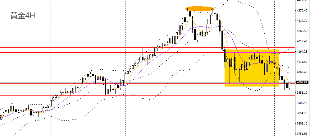黄金昨日重启跌势,创半个月以来新低,日线RSI跌至50左右,4小时下破4000-4160震荡区间下沿,4000-4020一带承压可继续进空,如彻底下破3970,可下看至3940附近。黄金/人民币可于917-920一带承压择机做空,如失守907,可看空至904。