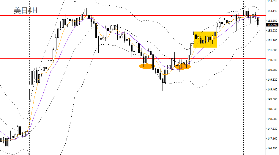 美日昨日小幅回升,持平前高,今日亚盘拐头下行,153.30附近仍面临强压,15分钟级别呈多重顶,152.60附近承压可进空,短线预计将回踩152,如继续失守,可看空至151.70附近。